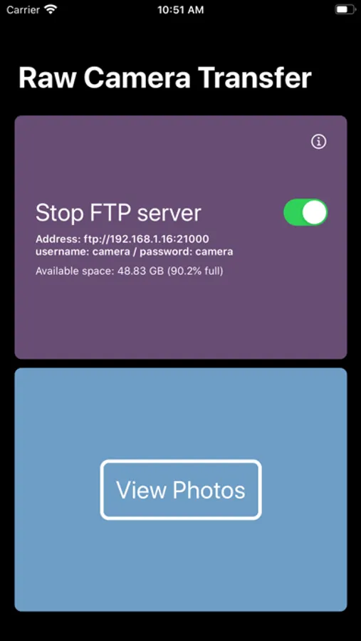 Raw Camera Transfer allows transferring raw (ARW) photos from your Sony™ Cameras via FTP.