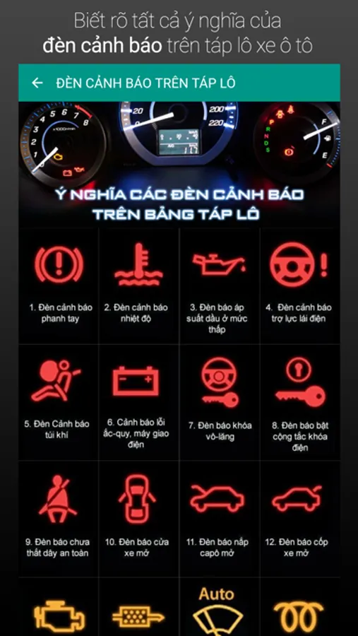 - Biết rõ tất cả ý nghĩa của đèn cảnh báo trên táp lô.