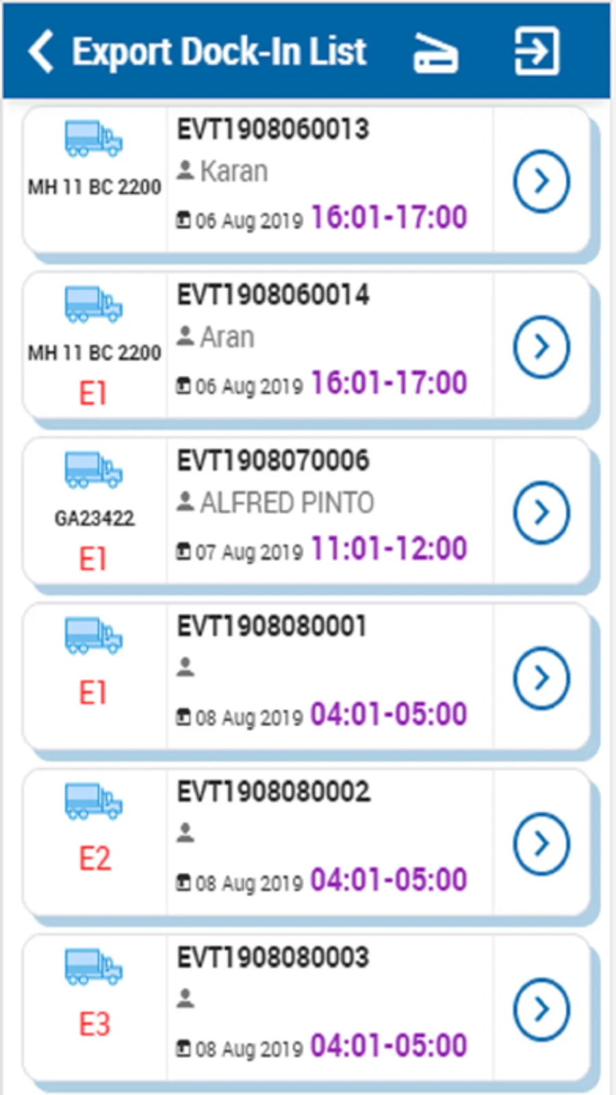• Dock Out: To dock out the GHA needs to enter the VT no. manually or scan the barcode and all the details pertaining to it shall be updated. The event status with the time stamp status shall be updated in ACS