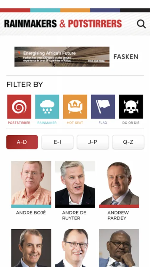 Rainmakers & Potstirrers is an essential go-to guide of Africa’s 100 most influential mining company executives.