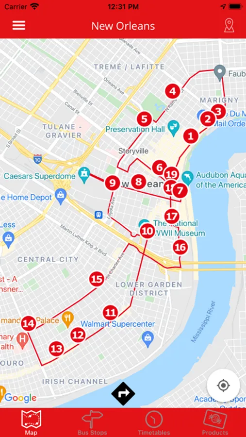 App that provides information for Tourists using City Sightseeing buses in New Orleans.
