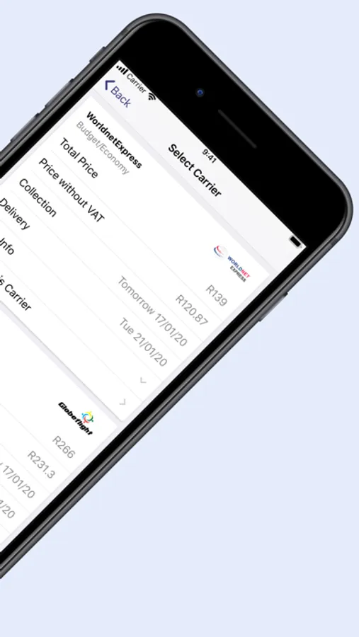 2. Input your parcel’s collection and destination addresses, weight and dimensions. The system then displays a list of Courier Partners, services and pricing that’s available according to your criteria.