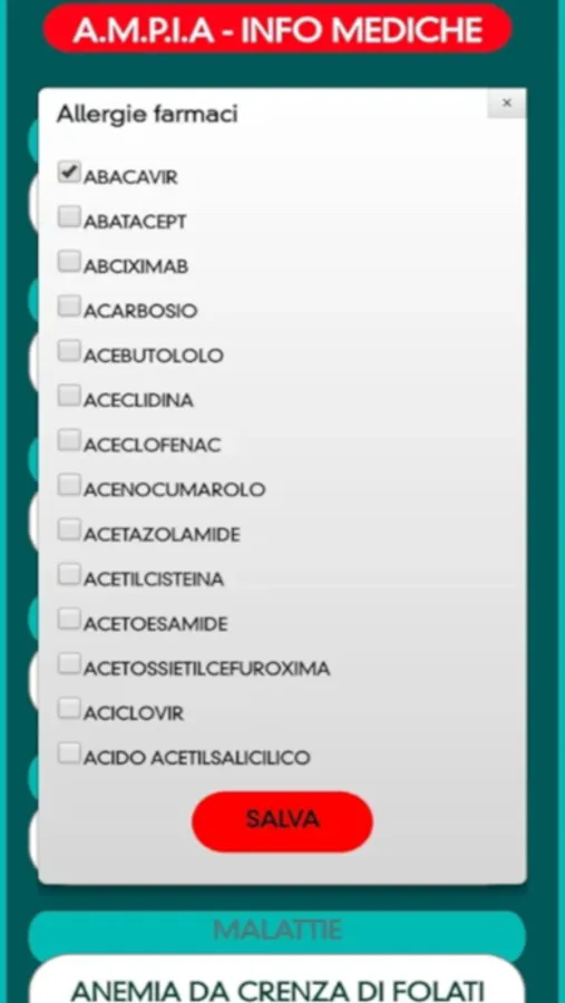 Le malattie, le allergie ai farmaci, le allergie alimentari, le operazioni chirurgiche e i traumi…sono selezionabili da menu pre impostati e sono tradotte in termine medico-scientifico in 7 differenti lingue (IT , DE, EN, FR, NE, ES, PT).