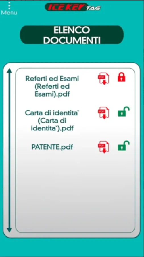 L'applicazione ICE-KEY TAG permette di memorizzare e di visualizzare i seguenti dati: