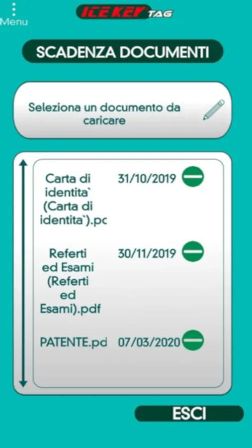 I dati anagrafici e medici inseriti all'interno dell'applicazione ICE-KEY TAG sono immessi in autocertificazione e sotto la totale responsabilità dell'utente.