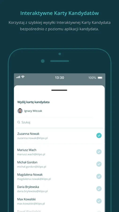 • Szybką wysyłkę Interaktywnych Kart Kandydatów do menedżerów.