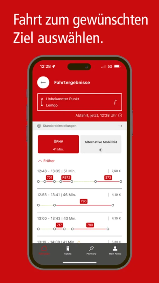 Durch Eingabe Ihres Start- und Zielpunkts sowie der Abfahrtszeit kannst du gewünschte Verbindungen abfragen. Start- und Zielpunkt können dabei ein Ort, eine Straße oder eine Haltestelle sein. In unserer Lippemobil App werden dir dann alle zur Verfügung stehenden Verbindungen angezeigt – inklusive Kartenausschnitt zur besseren Orientierung.