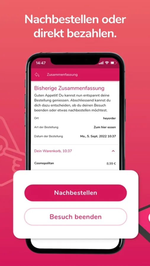 Mit heyOrder® musst du nie wieder warten, bis dich das Servicepersonal in einem Restaurant oder einer Bar sieht – bestell‘ einfach direkt per App.