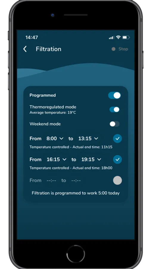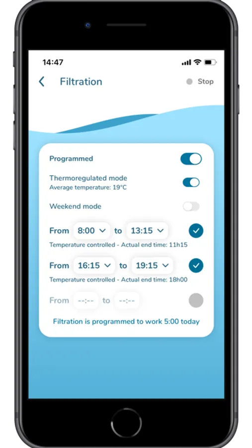 You can go out on a weekend safely, I am now there to look after your pool thanks to my activable weekend mode and its specific filtration ranges to be set.