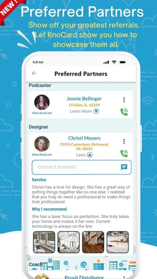 All KnoCards are added to a community that enables searching by meta tags, and the Preferred Partners feature allows you to promote other businesses that you recommend. The built in sharing tools and referral functionality will help expand your network. And with the ability to add external links, KnoCard is the perfect platform for network marketers, entrepreneurs, salespeople, and small businesses.