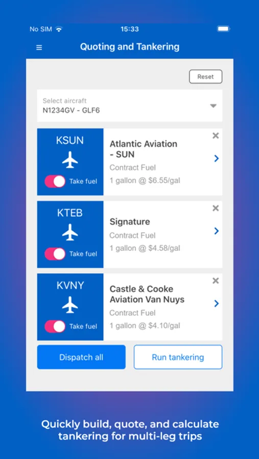 FuelerLinx Mobile 2.0 is a streamlined app designed to allow pilots to quote fuel, run tankering calculations, see their live flight schedule, and work with their fuel purchases from their mobile device.