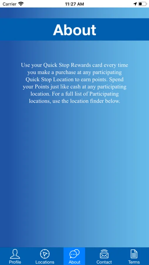 Stay on top of your QuickStop Rewards Points with the QuickStop Rewards app! This dynamic app for iPhone® and iPad® keeps track of your transactions as well as the number of Points earned every time you make a purchase at a participating merchant. Plus, the handy location finder enables you to find participating QuickStop Rewards merchants across the country, along with information for each location.