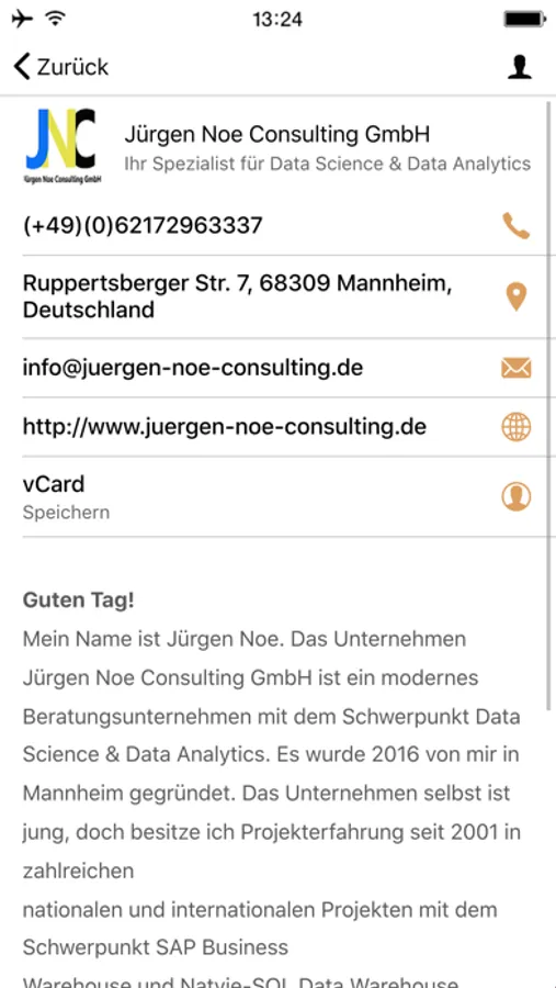 Sie erhalten Informationen über anstehende Events und Seminare der Jürgen Noe Consulting GmbH. Zusätzlich werden diverse PDFs und Videos mit Erklärungen, Tipps und Tricks aus dem Bereich Data Analytics und Data Science zur Verfügung gestellt. In den Artikeln lesen Sie aktuelle Trends, eingesetzte Technologien und persönliche Erfahrungen aus den Bereichen Data Analytics und Data Science. Außerdem finden Sie eine Unternehmenspräsentation sowie die Kontaktdaten zu unserem Unternehmen. Sie können per Chat direkt in Kontakt mit uns treten.