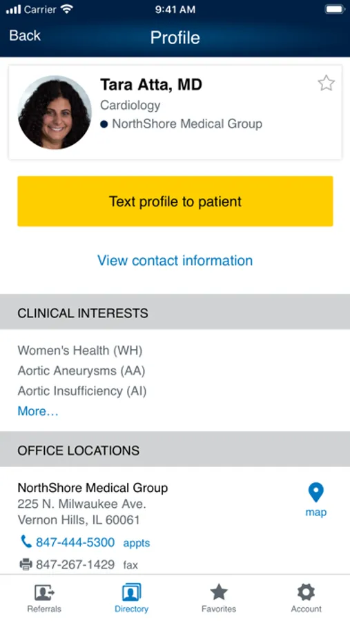 Using the app, you can text information and appointment telephone numbers for NorthShore physicians to patients, without sharing your cell.