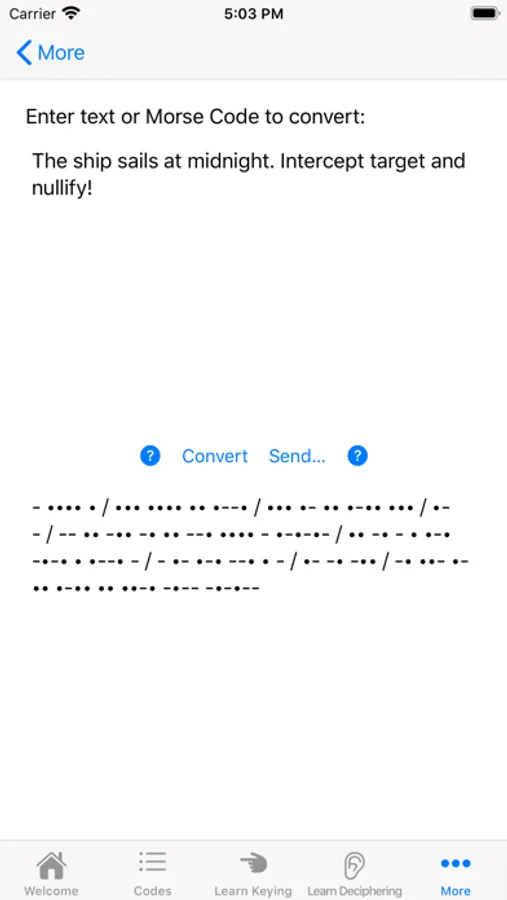 •A conversion utility that can translate to and from Morse Code using common dit and dah characters, as well as send the Morse Code using beeps or flashes.