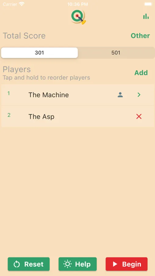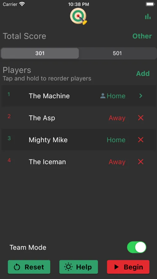 A simple but feature-rich app to score your dart x01 dart games with friends or even practices.