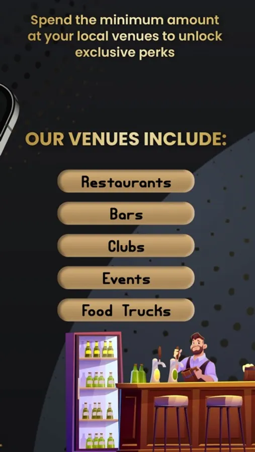Get more for your money by using our app. Simply spend the minimum amount at your local venues to unlock exclusive perks such as free food, free drinks, and more. Our venues include restaurants, bars, clubs, events, and food trucks. Best of all, our app is 100% free to use.