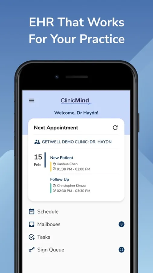 ClinicMind Mobile EHR is the simple, fast, and secure way to schedule, review and communicate with patients, stay up to date with tasks, and review clinical notes, all while on the go. ClinicMind mobile EHR is the perfect companion to the ClinicMind EHR Platform.