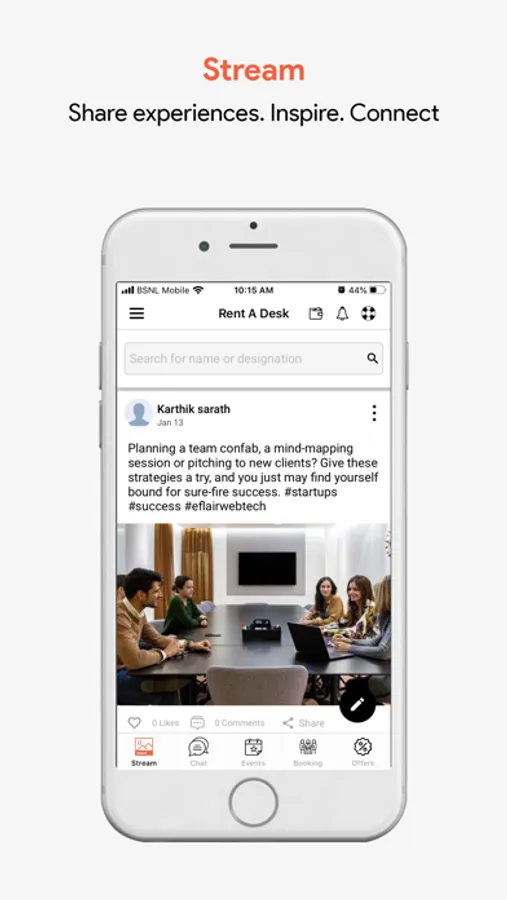 Rent A Desk app helps members share their personal experiences, collaborate with each other, book meeting rooms conveniently and avail member only discounts.