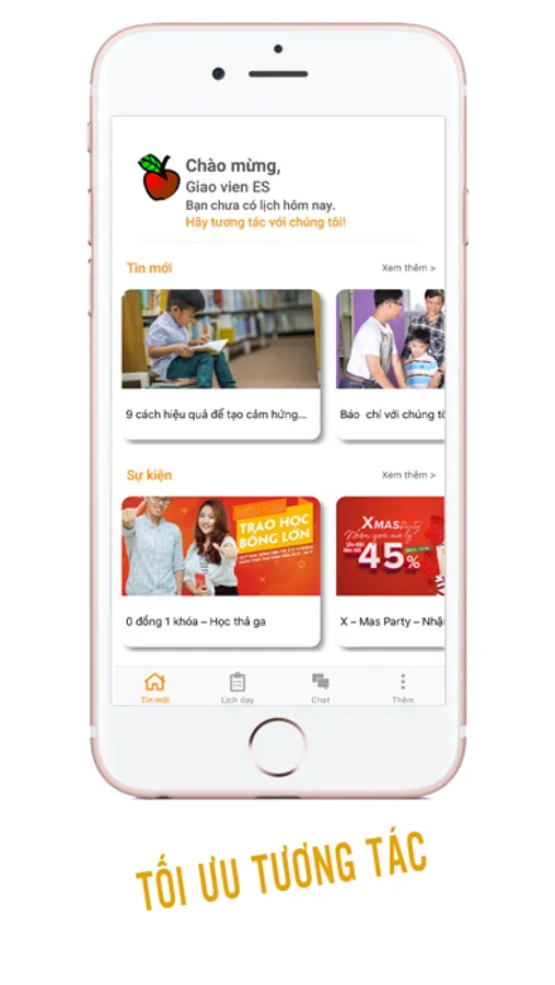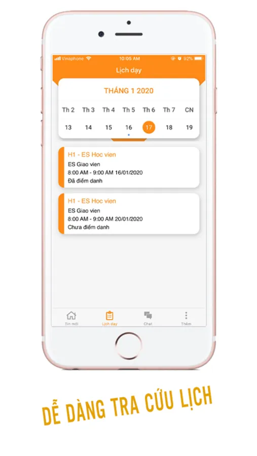 Giáo viên dễ dàng nắm bắt mọi thông tin về lịch dạy, lịch làm việc. Dễ dàng điểm danh, đánh giá học sinh ngay trên App