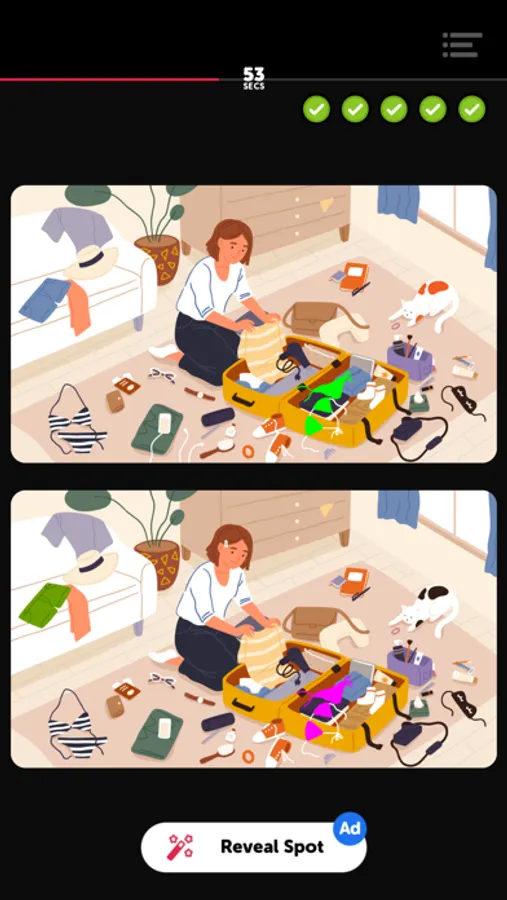 When a level begins you will be shown two photos that appear identical - but they are not! It’s your job to find the five differences between the two photos. Sometimes it’s easy, sometimes it isn’t.