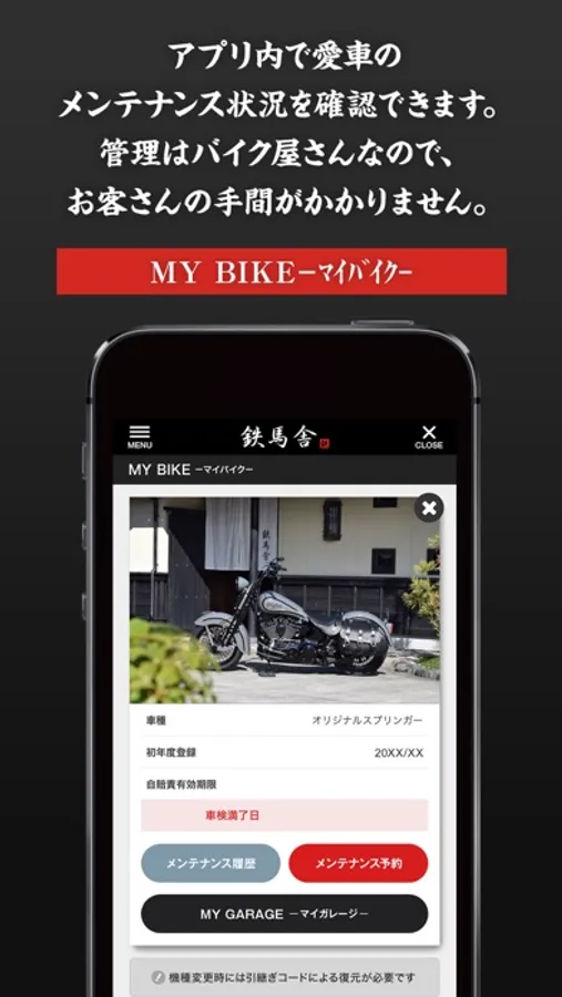 アプリからエンジンオイル・タイヤ・バッテリーの交換時期や車検の時期を確認出来ます。
