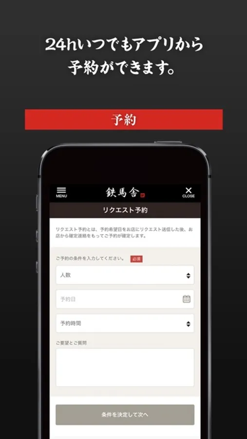 定休日でもや営業時間外でもリクエスト予約が出来ます。