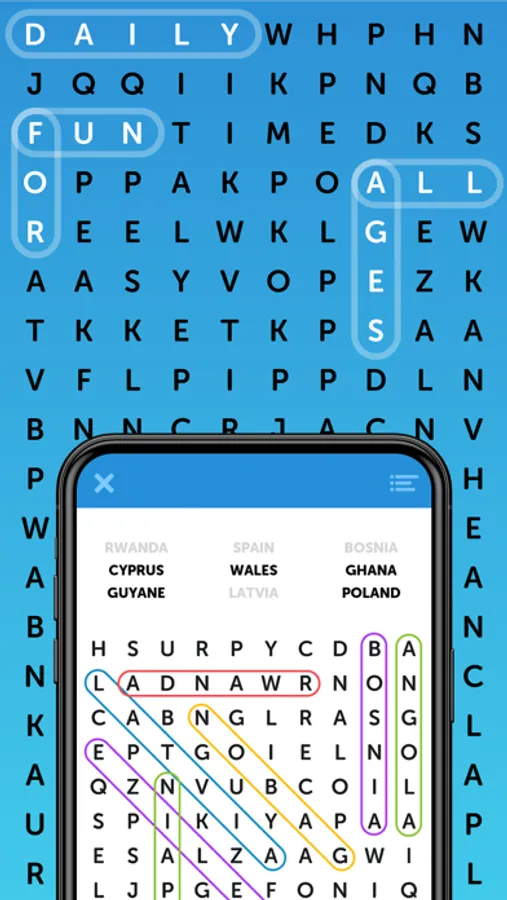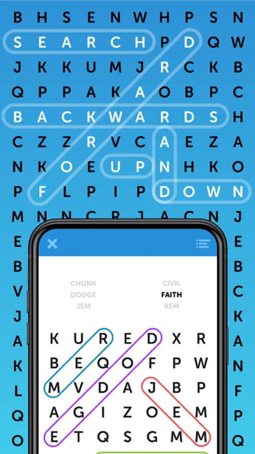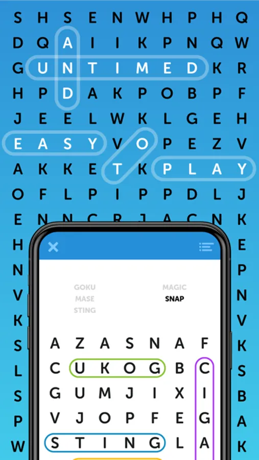 Welcome to Simple Word Search, a game that means what it says! The object of this classic free word game is the same thing you learned as a kid. You are given a word bank filled with the words that are hidden inside a grid of scrambled letters. It’s your job to seek and find all the words and highlight them in order to solve each word puzzle. Once you’ve searched and found a word, highlight the letters with your finger going either front, backwards, or even up and down! Keep hunting for the words from the list in the puzzle until you find them all.