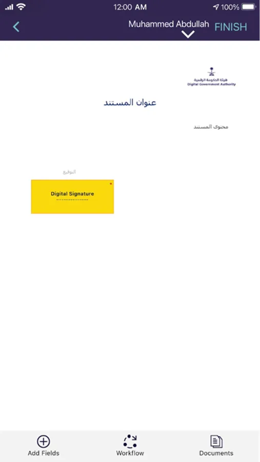 Digital Signature app for the Government of Saudi Arabia under the supervision of DGA (Digital Government Authority).