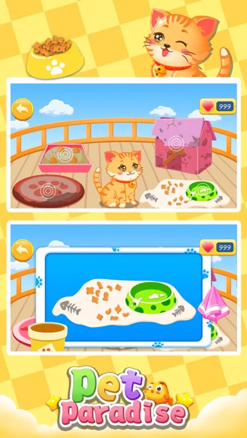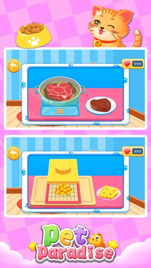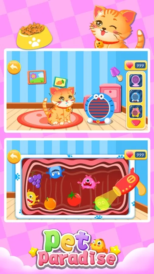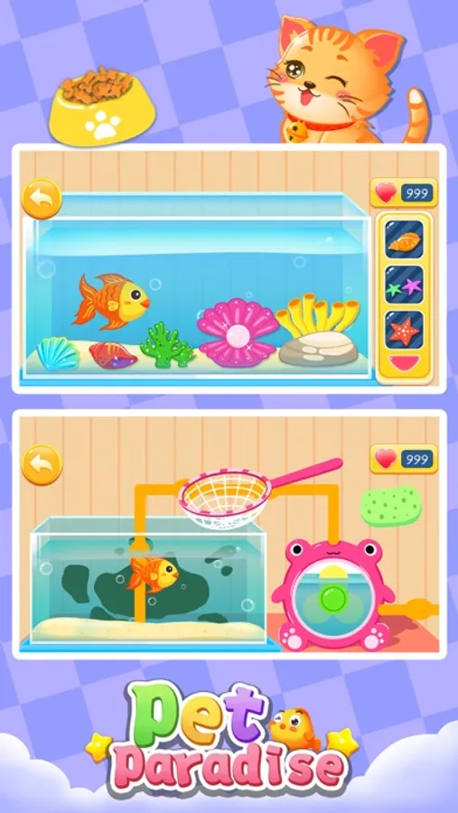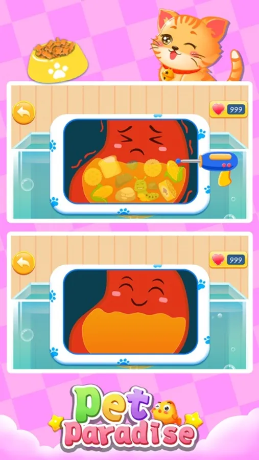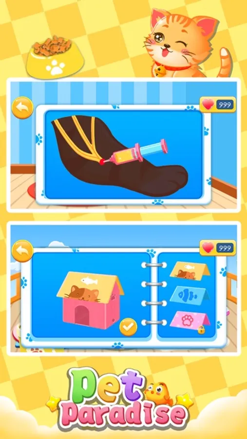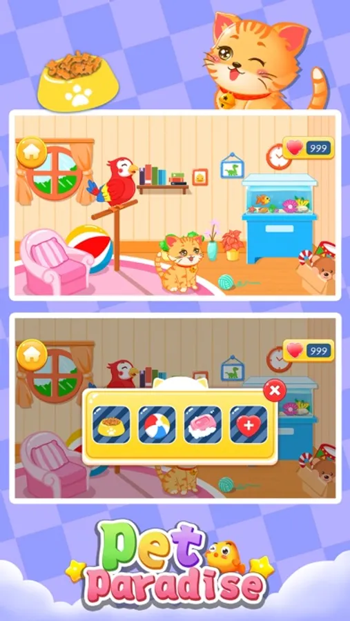 Pet Paradise is a cartoon-style pet game. This pet game adopts the way of children playing. The pets raised include cats, birds, goldfish, dogs Wait for all kinds of cute little animals, move your hand, feed the little animals to eat, help the little animals to see a doctor, give injections, take a bath, and cool animal dressing games. You need to take care of the pets adopted by Bella.