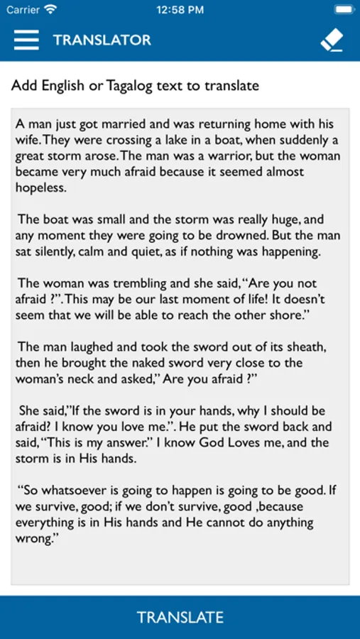 This is an English Tagalog translator with a dictionary of English Tagalog. This is a handy tool to learn Pilipino in English.