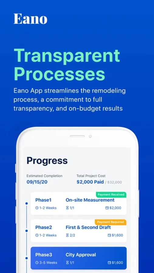Manage your project with the Eano app and enjoy an affordable, stress free renovation experience.