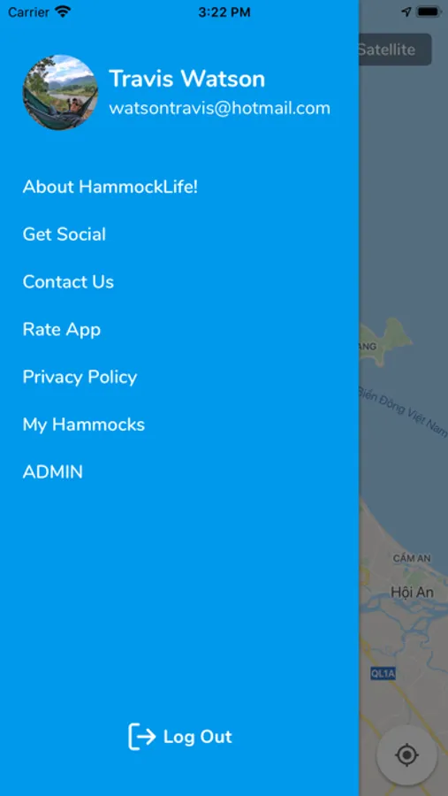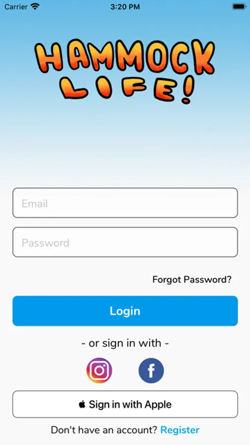 HammockLife! is a geobased location app allowing Hammock lovers around the world to mark and see awesome locations to string up a hammock. Users must first register through their email address and unique password or Facebook, Apple, or Instagram. Once that process is complete the HammockLife! app will show them their location on Google Maps. Users can mark their current location OR a location they were recently located to mark a Hammock spot for other Users to see.