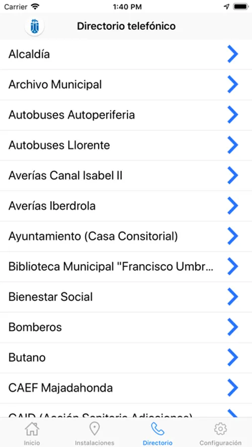 ¿Necesitas el teléfono de una farmacia? ¿Dónde está el Centro de Mayores? ¿Te interesa la web de un colegio o escuela infantil? ¿Buscas la dirección de un polideportivo? Encuentra lo que buscas, pulsa, y podrás llamar por teléfono, enviar un email, acceder a la web informativa o abrir el navegador para que te lleve a tu destino.