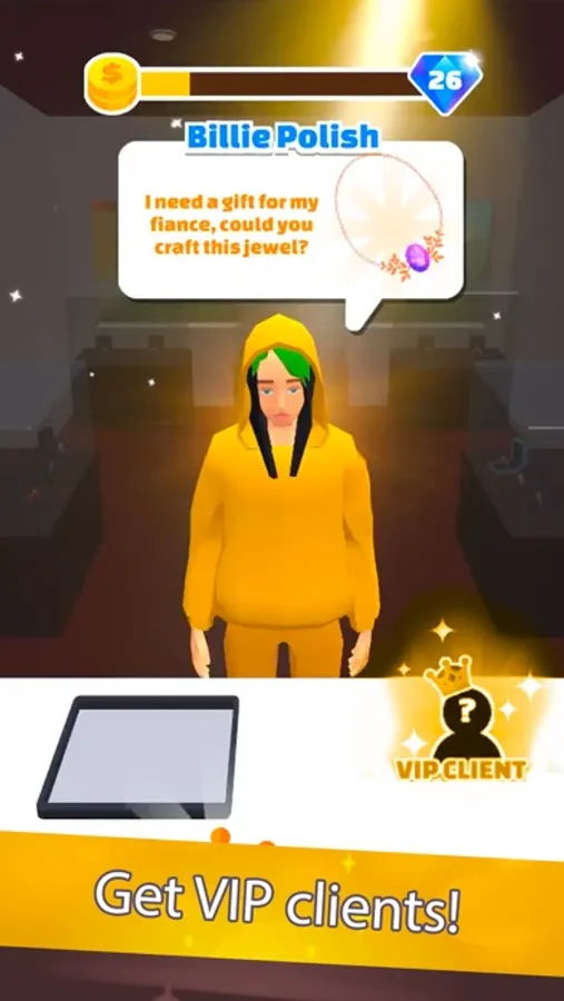 Sell your creations and acquire better stones & shapes, then upgrade your shop with the collected money!