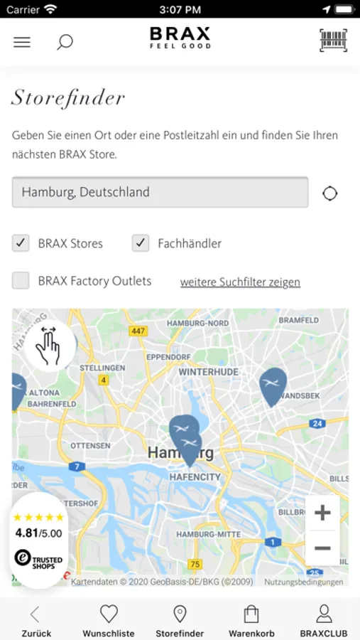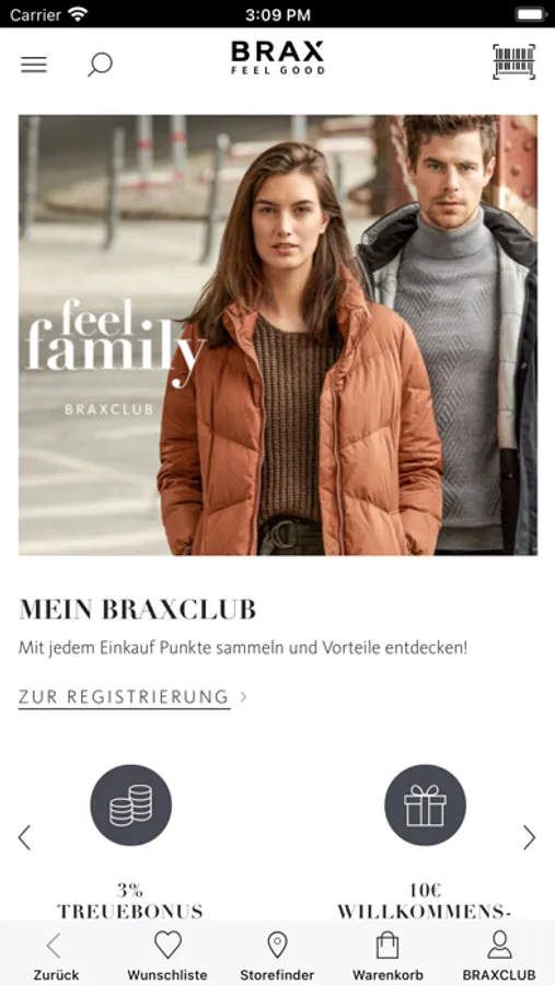 With the BRAX App you have all your options and benefits on your mobile device. Use the app as a digital club card to get the benefits of the exclusive BRAXCLUB, such as a 3% loyalty discount. Get inspired by smart BRAX fashion in the Trendbook, which can be stylishly combined to great outfits or shop directly via the app.
