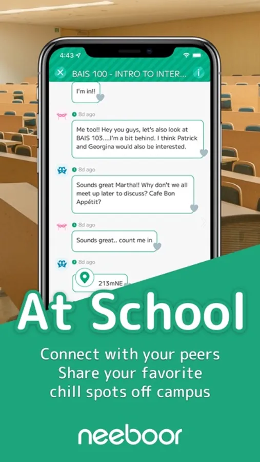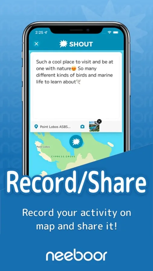 4. Finding people with common interests: Share your location to find and connect with people who have common interests nearby! neeboor enables you to discover new things in your local area or wherever you`re going out because it is location based!