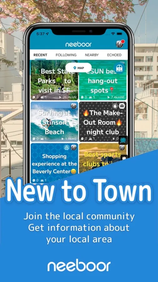 neeboor is a new social app that let`s you connect with nearby users and share real-time experiences.