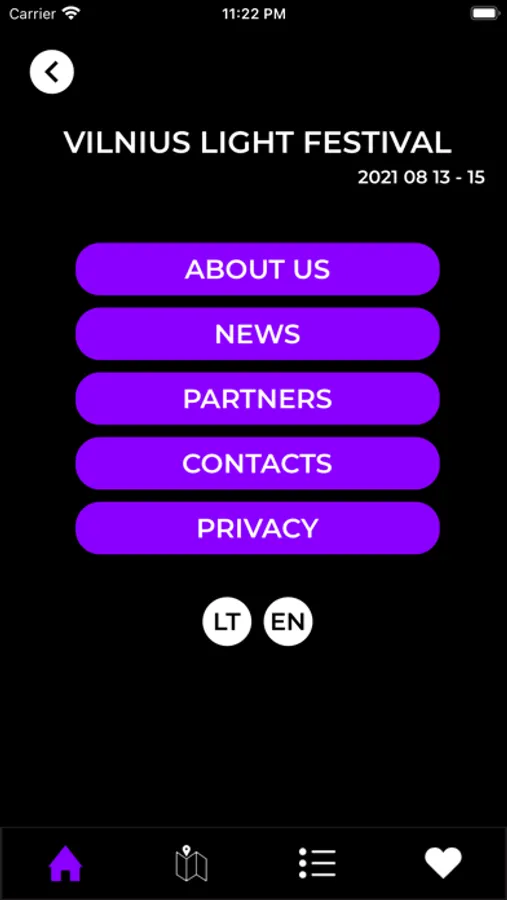 Vilnius Light Festival, that covers the central part of the city, and has gained the recognition of countless visitors, will invite guests and residents of the capital of Lithuania to celebrate the birthday of Vilnius city on the 25-29th of January 2022. On the last week of January, lighting installations, light objects, projection and mapping projects created by Lithuanian and foreign artists will be installed in the courtyards of Vilnius city. The theme of the festival - the courtyards of Vilnius. All these objects are arranged sequentially along the festival route in different parts of the city. We want to create a mobile app, so that the festival visitors can visit all the objects in sequence and not miss any of them. On the app, visitors of the festival will be able to find all objects and all information about them - visiting hours, description of the object and its address. The app will also provide access to key festival news and festival partners. The festival’s visitors will be able to mark their favorite objects with the “like” button. The app is designed for convenient visitor navigation of the event area and important announcements.