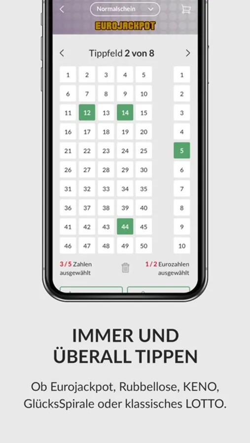 Ihre ganz persönlichen Lieblingstipps können Sie ab sofort auch direkt in der App speichern. Dazu einfach Ihre Lieblingskombination wie gewohnt über den Spielschein vorbereiten, auf Speichern klicken und Ihrem Tipp einen Namen geben. Über den Bereich „Meine Spielscheine“ können Sie Ihren Tipp jederzeit wieder aufrufen und online oder in einer Annahmestelle abgeben.
