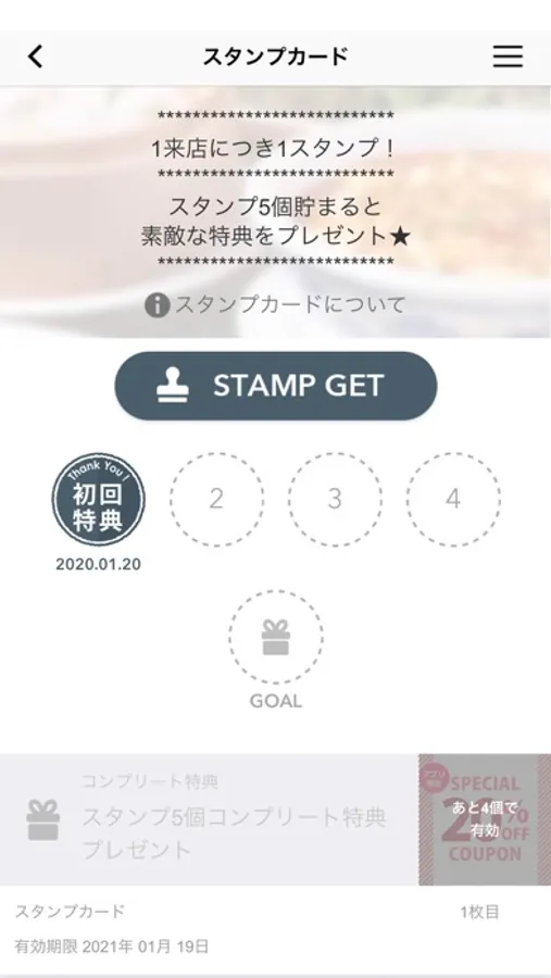 たくさん貯めていただくと次回使える特典をご用意しております。