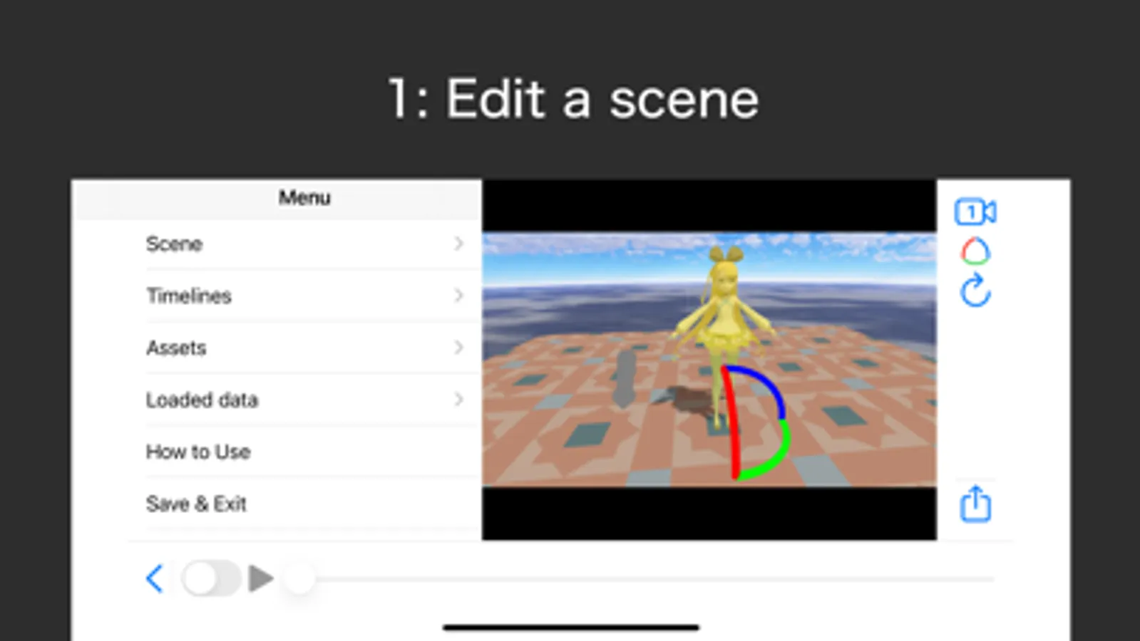 Note that this app doesn't include any 3D model data and motion data. You need to prepare and import them by yourself.