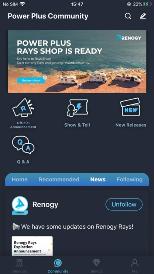 The DC Home app is made specially for the off-grid community to monitor your Renogy powered solar solutions, share your DIY solutions in the community, and learn more about the solar energy from Renogy users worldwide.