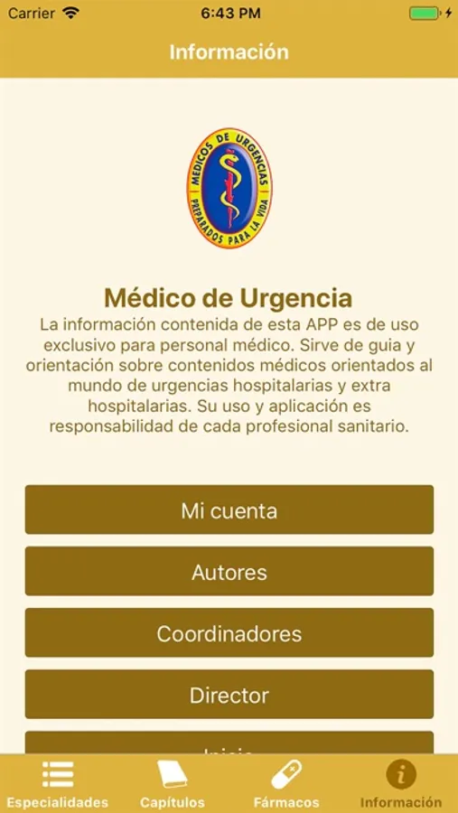 Es un libro de urgencias médicas hospitalarias creado bajo colaboración de médicos de diversos hospitales Españoles. Nos permite tener acceso rápido a temas de urgencias médicas hospitalarias y extrahospitalarias para su aplicación en la práctica médica de la vida diaria de los profesionales dedicados a las urgencias hospitalarias, de atención primaria y de emergencias extrahospitalarias. Esta APP está disponible para descargarla en los diversos dispositivos electrónicos. Contiene los principales aspectos de las urgencias médicas. Se actualiza de forma continua y en linea por diversos profesionales sanitarios. Esta APP no sustituye a ningún tratado de ciencias de la salud o guías médicas de otros autores o empresas del mundo sanitario