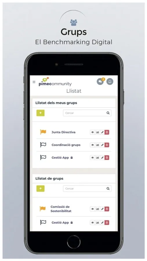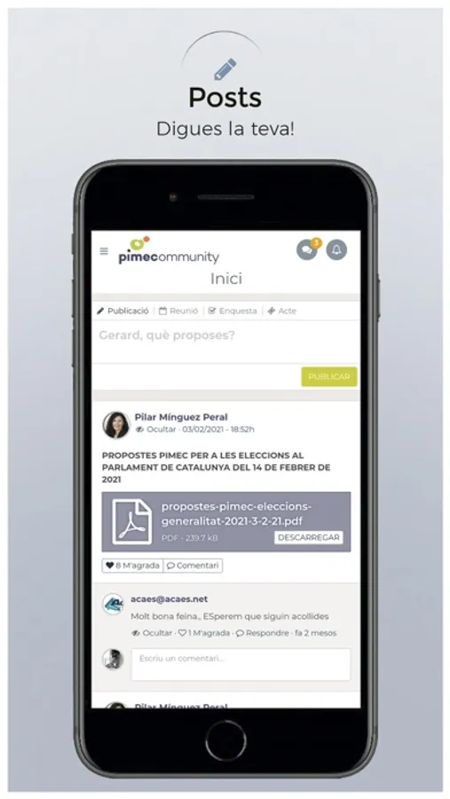 Descarrega't l'App, demana el teu accés i comença a interactuar a els membres de Pimec