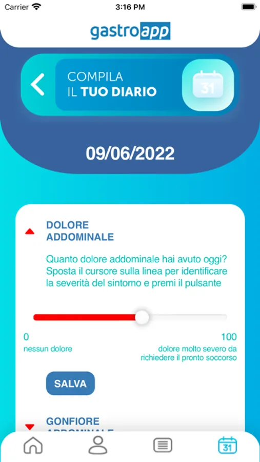 Gastroapp è una app rivolta ai pazienti affetti da Sindrome da Intestino Irritabile. Tramite la APP i pazienti potranno tenere quotidianamente aggiornato il proprio diario clinico, e periodicamente inviarlo al proprio medico per una sua valutazione. Le voci del diario sono state sviluppate secondo le indicazioni dei principali esperti del settore.