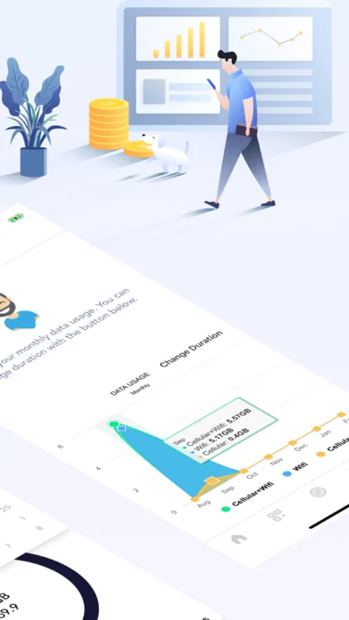 Securely manage your cellular and Wi-Fi data and keep track of previous usage weekly, monthly or yearly.
