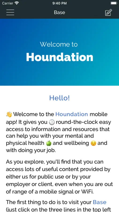 Houndation provides wellbeing functionality, a guide to our services and a gateway to our enterprise platform for online and offline distribution of dynamic information and workflows to an organisation’s employees, casual personnel and subcontractors.