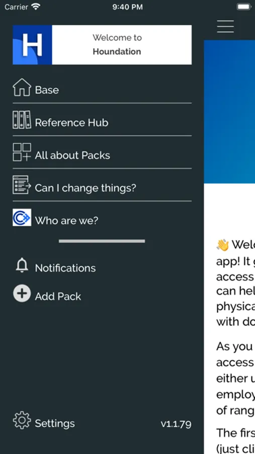 The app is designed so that users can install various Packs, some of which are available to the public without authentication and some of which would be managed by an employer or client (the Platform customer). The Packs bring functionality and content designed to support users in areas such as Employee Wellbeing, Health and Safety and Process Compliance. These customer packs can be used by any invited user with an iOS device, not just a phone supplied by their employer (the majority of the users do not have access to corporate handsets or email).