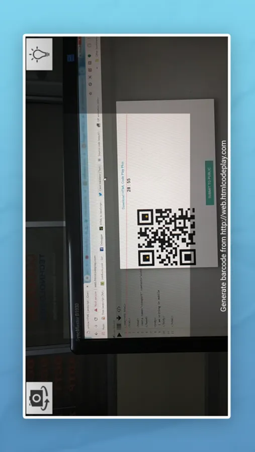 d) Finally, open this application and press the "GET" button from the app editor screen, it immediately opens the camera for reading a barcode, when you scan it you will get your code immediately from PC.